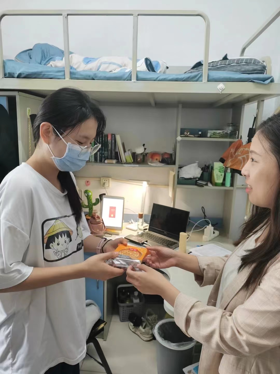 皎皎月光下,老师们走进每一间寝室为初来东师的学子们送来饱含温情的月饼。这是一个别样的秋,一个难忘的节。