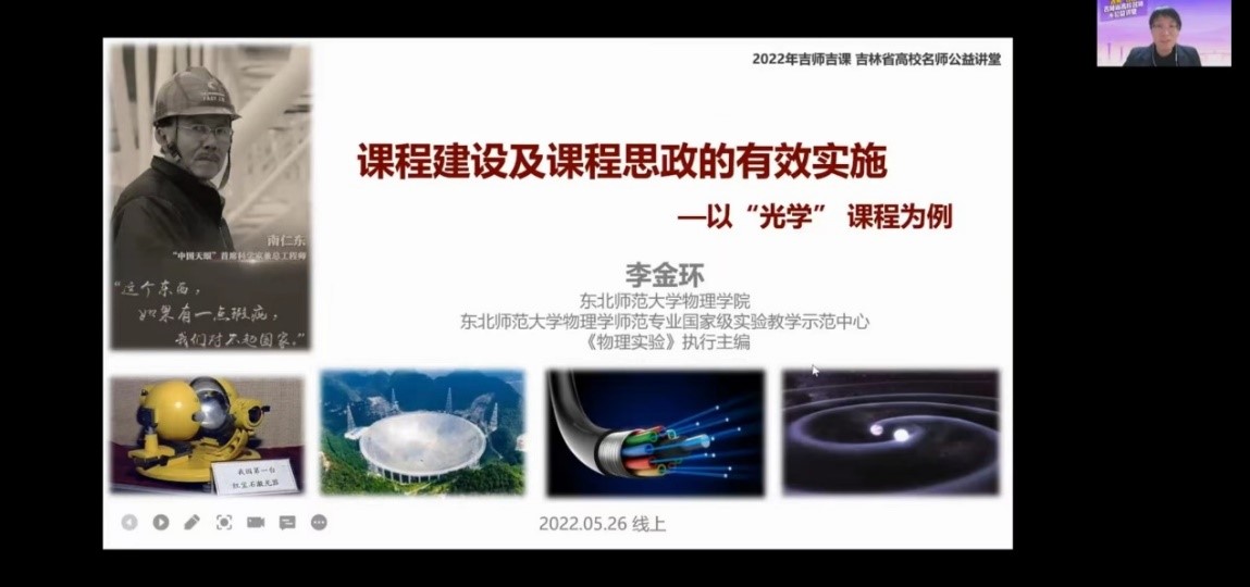 2022年5月26日,吉林省高校教师教学发展联盟推出了吉林省高校名师公益讲堂系列活动的第四十六讲,必一运动(官方网站)B·Sport-权威运动资讯网站李金环教授应邀作报告,题目为《课程建设及课程思政的有效实施——以“光学”课程为例》。李老师结合光学课程改革实例,从“对课程的认识”、“对课程思政的认识”和“课程思政的实施”等三个层面分享了从国家思政示范课程和国家一流课程等教学成果建设过程中凝练出来的宝贵经验。