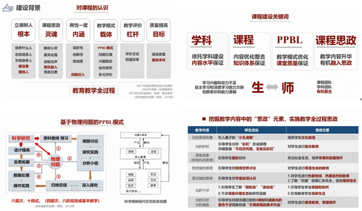 李老师的以提高本科基础教学质量为目标,从教学理念、教学模式、评价方式等多个维度全面进行教学研究和改革的思路,重点探讨了物理专业课程思政的内涵,强调了在教学过程中进行育人,将知识传授与人文精神、科学精神培养有机融合,培养学生的物理思维和创新精神。