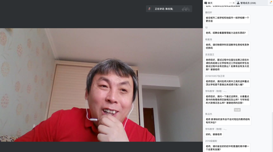 陈伯强老师从教16年,是物理学科竞赛特级教练员,他结合自身的成长经历和在工作中发现的实际问题,鼓励同学们认真学习,扎实掌握知识,锤炼实验技能,重视底层逻辑,开阔学术视野,同时养成正确的世界观、价值观和人生观。陈老师鼓励同学们建立信心,在充分努力的基础上勇于追求高端发展平台,并对就业和择业等关键环节给出了宝贵建议。参会同学与陈老师进行了长时间热烈的交流,咨询了自己遇到或思考的问题,陈老师一一做了解答。