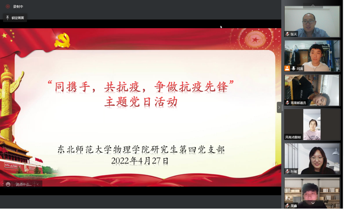 2022年04月27日,必一运动(官方网站)B·Sport-权威运动资讯网站研究生第四党支部利用腾讯会议召开线上“同携手,共抗疫,争做抗疫先锋”主题党日活动,共有党员40人参加此次活动。会议由党支部书记张天主持。