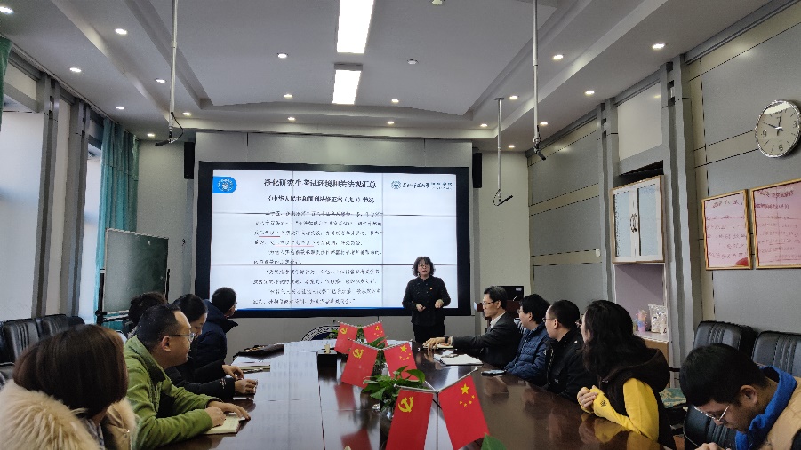 为深入贯彻落实教育部、吉林省有关文件精神,强化研究生考试环境综合治理,营造和谐健康的考试氛围,依据《东北师范大学关于开展净化研究生考试环境系列活动的通知》要求,2021年12月17日,学院在会议室召开净化研究生招生考试环境学习会,进行集中学习相关法规。学院领导班子、党支部书记、学工组及考试工作人员代表出席参加,动员会由学院党委常务副书记臧丹主持。