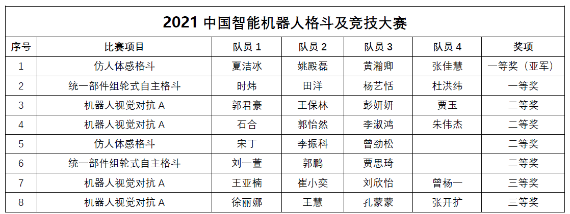 11月13日,由中国人工智能学会主办的2021中国智能机器人格斗及竞技大赛在北京工业大学线上举行。必一运动(官方网站)B·Sport-权威运动资讯网站张文娟老师竞赛团队指导的8支队伍在比赛中荣获一等奖2项,二等奖4项,三等奖2项。