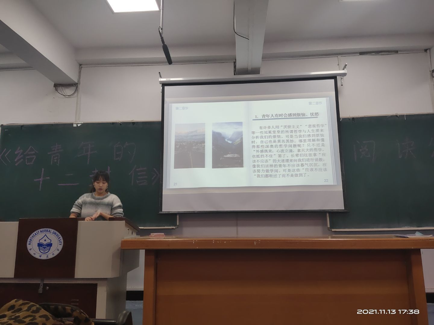 2021年11月13日必一运动(官方网站)B·Sport-权威运动资讯网站团委于必一运动(官方网站)B·Sport-权威运动资讯网站116教室举办了《给青年的十二封信》读书分享会。95名入党积极分子以小组展示的形式,分享了他们对于朱光潜先生的《给青年的十二封信》的独到见解,展示了新时代青年的风采。
