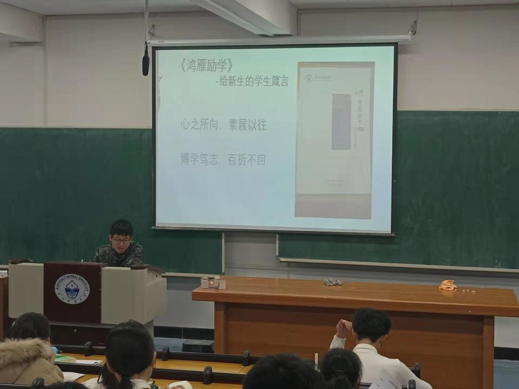 分享会中,班级干部带领同学们集中阅读《鸿雁励学》的各个篇章,同学们也积极分享交流,先后探讨了人生目标规划,时间管理以及学习研究等各方面问题。随后大家也纷纷表示会把榜样的力量化作自己努力前行的动力,努力做敢于有梦,勇于追梦,勤于圆梦的青年人。最后各班班长进行了此次专项学习的总结,传达了脚踏实地,勇敢前行的坚定信念,希望大家不负时光,不断超越。