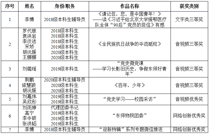 近期,学校党委宣传部举办了2021年度“传承红色基因,迎接建党百年”东师网络思政项目培育和成果征集工作,学院师生积极参加。经过校内、外专家学者评审,学院共获立思政培育项目1项、获评奖励类成果7项,具体情况如下: