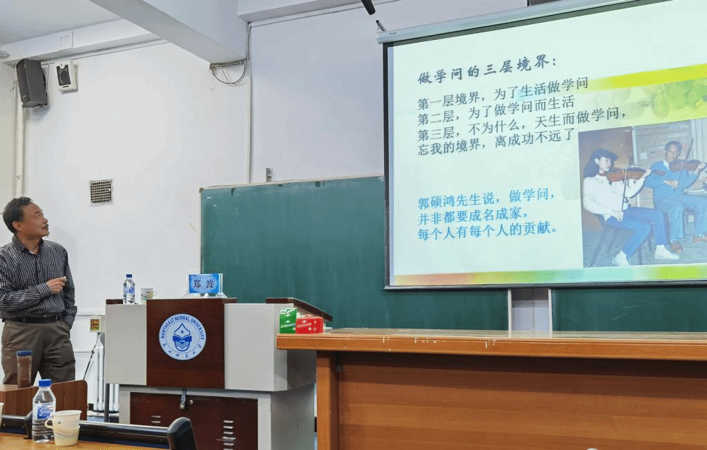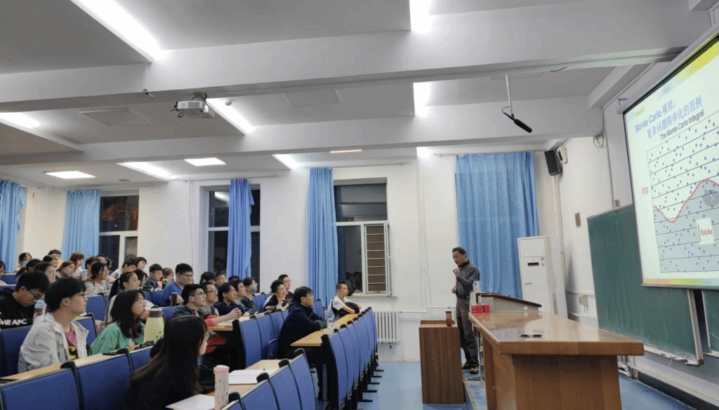 郑波教授从物理与人生两大方面展开讲述。首先,郑波教授深入浅出地讲解了物理的思维方法,阐述了如何进行不同学业阶段的衔接,以及物理思维的训练方法;接着,郑波教授结合图片与事例,幽默风趣地与同学们分享自身经历与感悟;最后,郑波教授与在场同学们互动,耐心细致地为同学们答疑解惑。