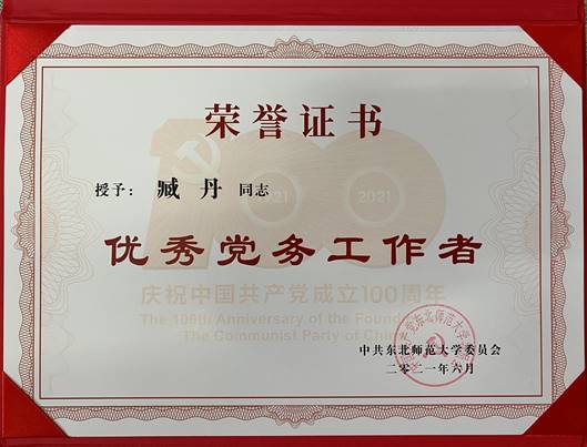 在隆重庆祝中国共产党成立100 周年之际,为选树典型、表彰先进,弘扬正气、鼓舞干劲,营造见贤思齐、对标争先的良好氛围,学校党委研究决定,共评选76名优秀共产党员、42名优秀党务工作者、30个先进基层党组织。学院党委荣获“先进基层党组织”荣誉称号,学院党委委员王庆勇、材料党支部书记汤庆鑫荣获“优秀共产党员”荣誉称号,学院党委副书记兼副院长臧丹荣获“优秀党务工作者”荣誉称号。