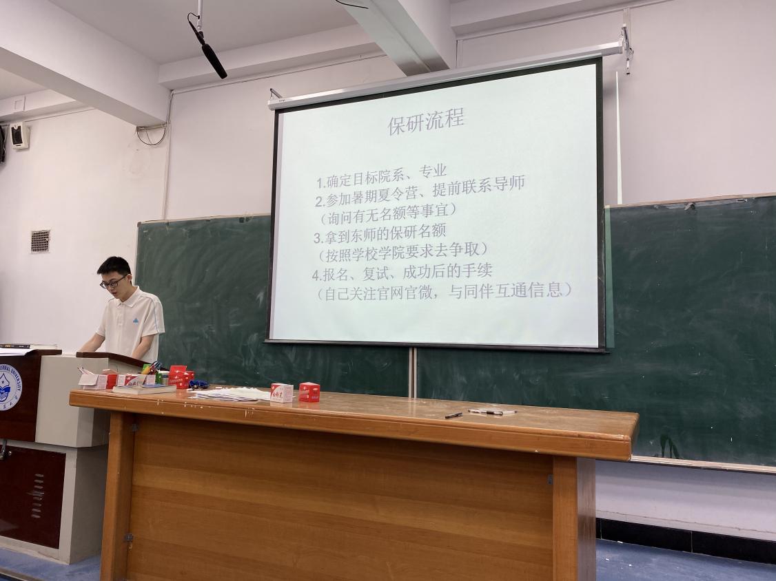 五位优秀毕业生结合自身的保研、考研经历,以及研究生阶段的学习与生活,针对保研流程、考研流程、学校选择、专业选择等方面的相关问题进行了充分的讲解和回答。同时,裴健成、张家铭还针对就业方面的地域选择、学校选择等相关注意事项进行了讲解,杜鑫就申请外校攻读博士学位的具体流程进行了答疑,李大帅、王越向在场学生介绍了本校硕博连读申请的相关事宜。在场学生收获颇多。