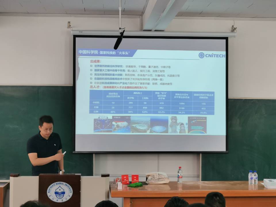 李昂首先播放了宁波材料所的宣传视频,然后从科研平台、培养战略、培养成果、招生渠道、学习生活、就业去向等六大方面进行了介绍,为在场学生展现了一个具有强大自主创新能力、取得丰硕研究成果、为国家科学进步作出重要贡献的一流研究所。随后,胡本林、汪龙两位研究员分别结合自身的教育及科研工作经历、研究领域等方面展开讲解。最后交流讨论环节,三位主讲嘉宾为学生进行了详细的答疑,并送出精美小礼品,对有意愿报考宁波材料所的学生表示欢迎。