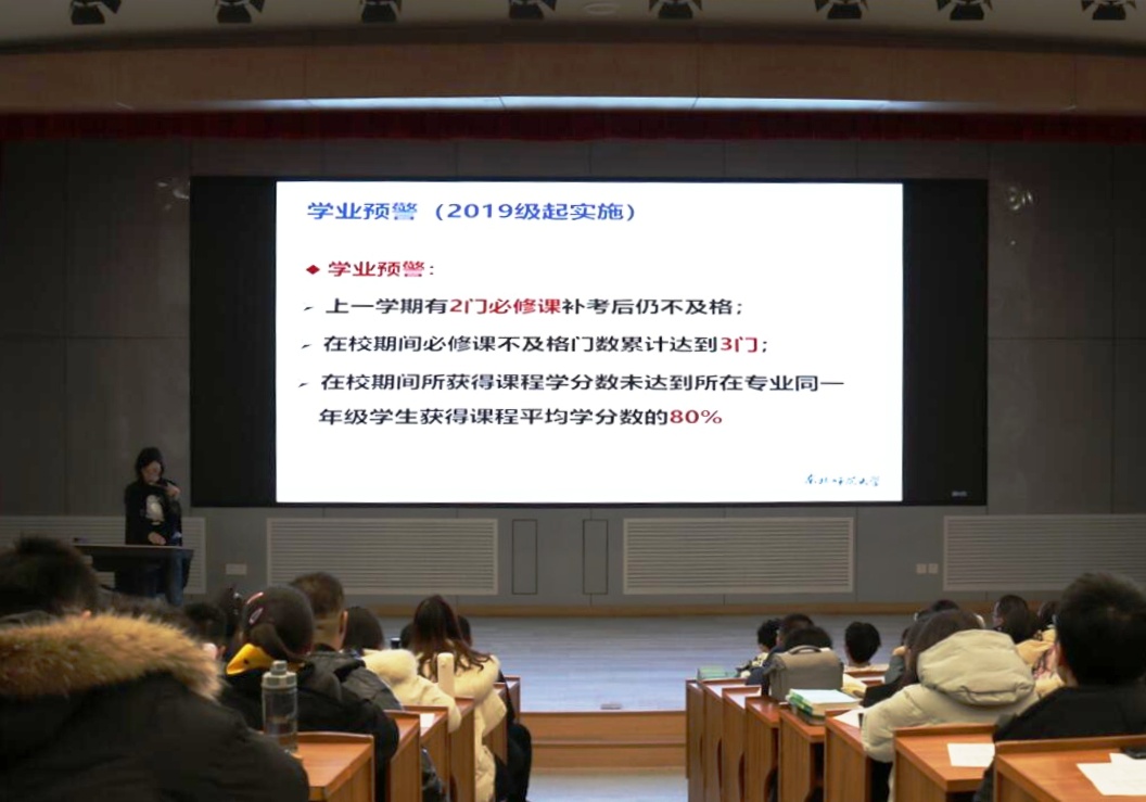首先马秀梅老师从专业课程设置及必一运动(官方网站)B·Sport-权威运动资讯网站本科人才培养方案、学业预警与退学预警有关规定、选课各阶段注意事项,考试及创新创业实践学分有关制度等五方面进行介绍。指出了本科阶段学习方面需要注意的具体事宜,使同学们对新版培养方案有了初步的认识和理解。会上,马秀梅老师详细解读了《东北师范大学本科生学业预警工作实施办法(试行)》的文件,对学业预警、退学预警分别做出了解释。会后,2020级所有学生签署了承诺书,表示大学四年会认真规划学业,刻苦努力,顺利毕业。