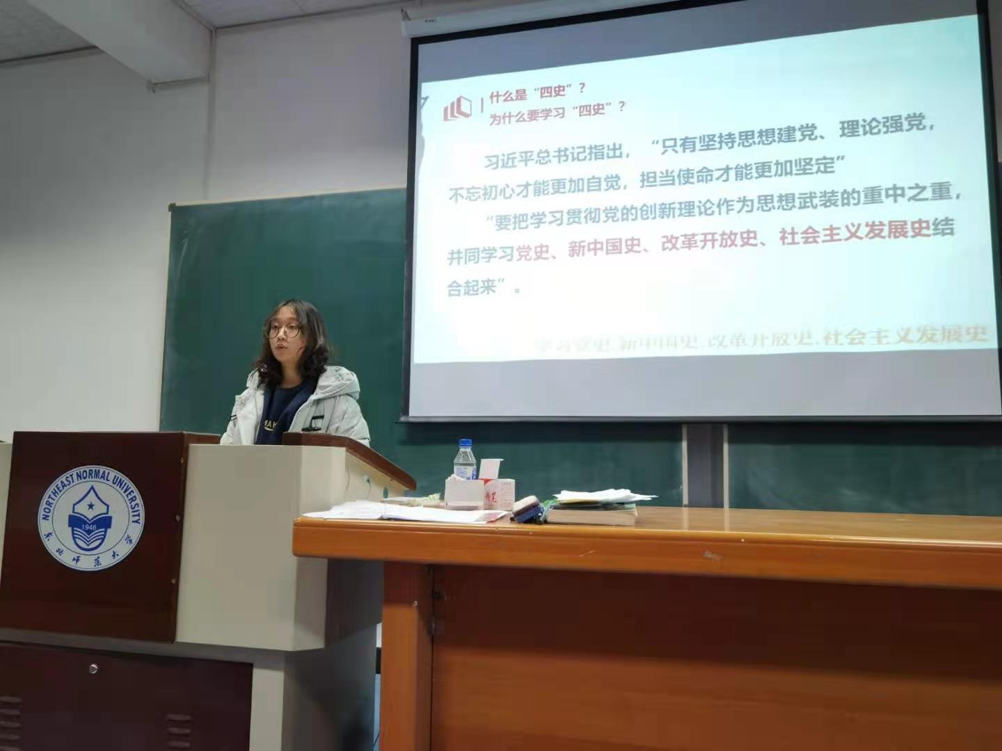 首先各班团支书向同学们详细阐释了“什么是‘四史’”、“为什么要学习‘四史’”、“学‘四史’要学什么”、“如何学好‘四史’”等问题,并简要概括了四史的内容。同学们对此深有感触,积极分享自己学习的感悟。随后,各班团支书又组织同学们观看了有关四史的视频,让同学们对于四史有了更进一步的了解。