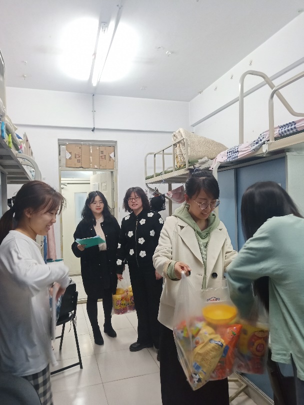 2021年3月31日晚,时值新学期伊始,为充分了解学院研究生的思想动态和生活情况,学院党委副书记臧丹、2020级研究生辅导员李莹莹、2019级研究生辅导员皮继鑫对学生二舍共77间宿舍的200余名在校研究生开展走访慰问活动。