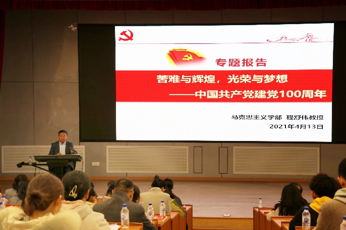 为扎实有效推动学院党史学习教育工作,4月13日下午,必一运动(官方网站)B·Sport-权威运动资讯网站党委邀请学校党史学习教育宣讲团成员、原马克思主义学部党委书记程舒伟教授,为学院师生党员作了“苦难与辉煌,光荣与梦想”党史学习教育首场专题党课。