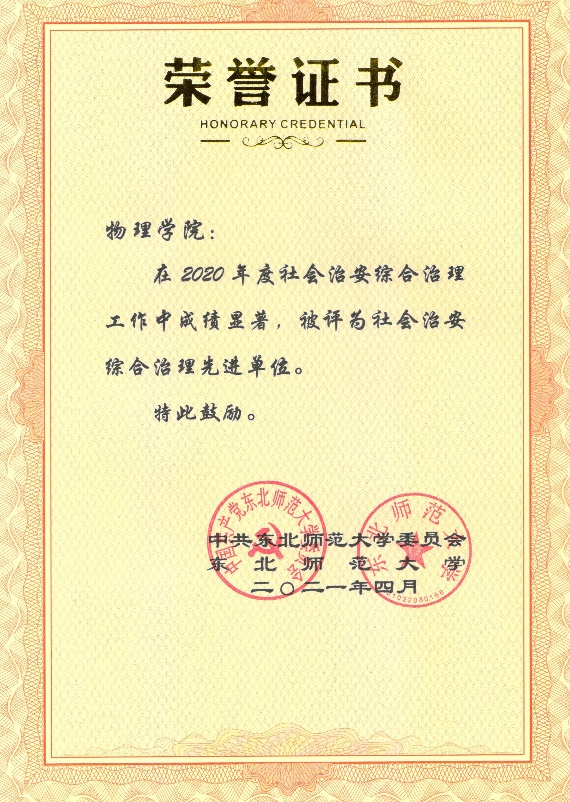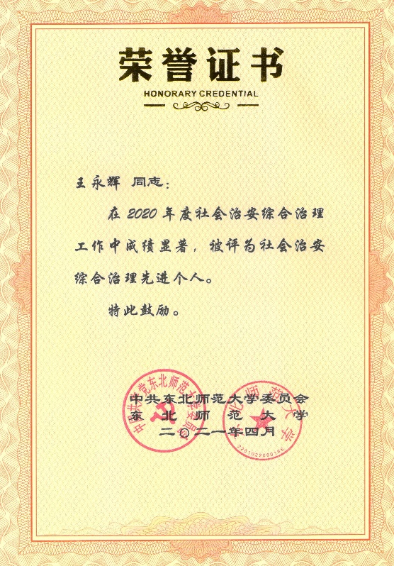 4月12日,学校党委下发了《东北师范大学关于表彰2020年度社会治安综合治理先进单位、先进个人的决定》,必一运动(官方网站)B·Sport-权威运动资讯网站被评为“2020年度社会治安综合治理先进单位”, 必一运动(官方网站)B·Sport-权威运动资讯网站办公室主任王永辉同志被评为“2020年度社会治安综合治理先进个人”。