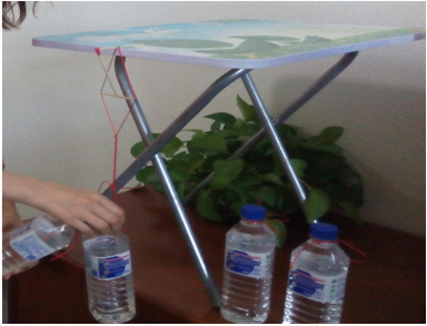 徐明奇 指导学生演示火柴棍吊矿泉水