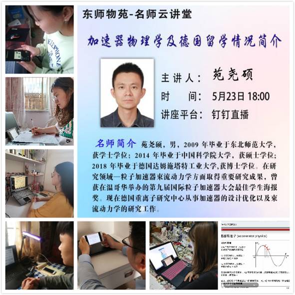 5月23日,名师云讲堂“加速器物理学和德国留学情况简介” 通过线上钉钉直播形式成功举办。本次活动有幸邀请到我校优秀校友苑尧硕做客名师云讲堂,必一运动(官方网站)B·Sport-权威运动资讯网站党委副书记臧丹、副院长姚成顺等共计98名师生参会。