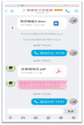 2.就业“云指导”。就业指导工作坊指导教师主动和就业困难学生结成“一对一”帮扶对子,线上一对一个性化进行就业指导,通过心理疏导、简历制作、面试指导、就业信息分享等措施全面帮扶学生,切实解决学生“不敢就业”、“不知道怎么就业”的难题。
