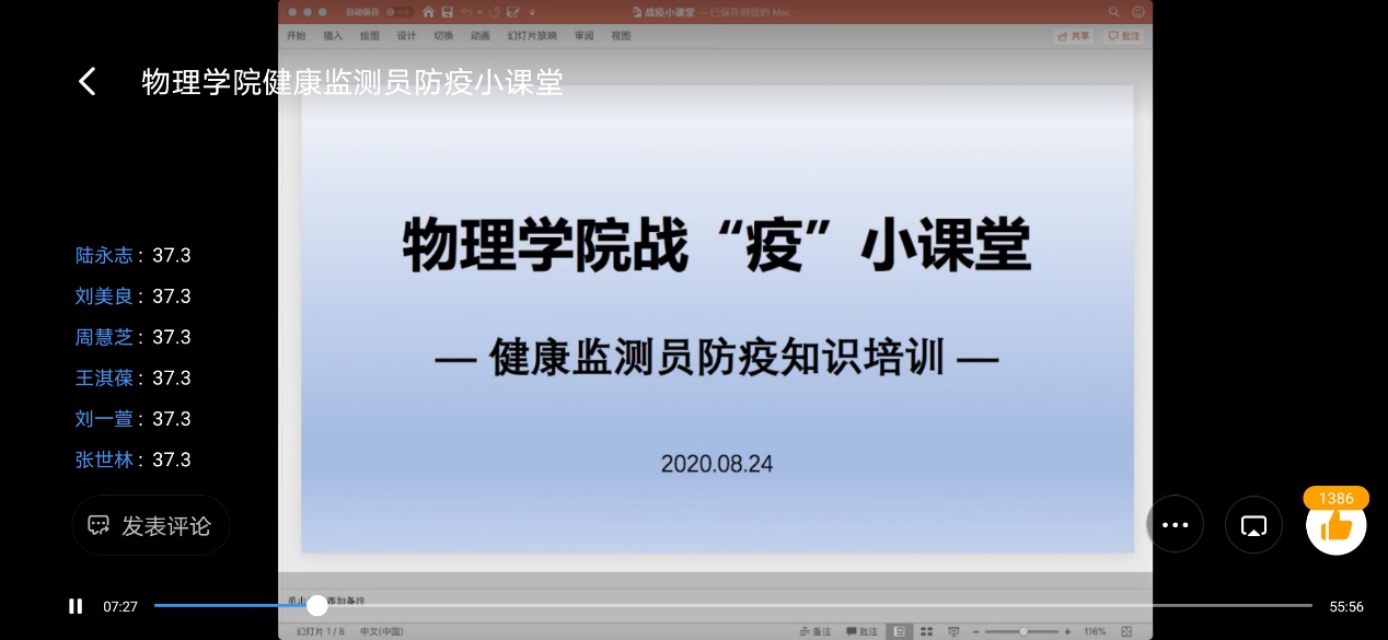 2020年8月24日晚8点30分,必一运动(官方网站)B·Sport-权威运动资讯网站健康监测员培训在钉钉平台上顺利完成,辅导员刘雨婷做了防疫知识的分享,学院本、研共127名健康监测员参与了此次培训。