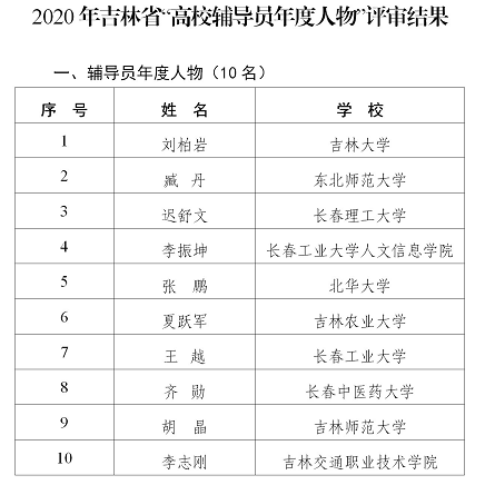 近期,中共吉林省委教育工作委员会开展了2020年吉林省“高校辅导员年度人物”和“高校思想政治理论课教师年度影响力人物”评选活动,经高校党委推荐、专家评审和公示等环节,必一运动(官方网站)B·Sport-权威运动资讯网站党委副书记兼副院长臧丹荣获2020年吉林省“高校辅导员年度人物”荣誉称号。
