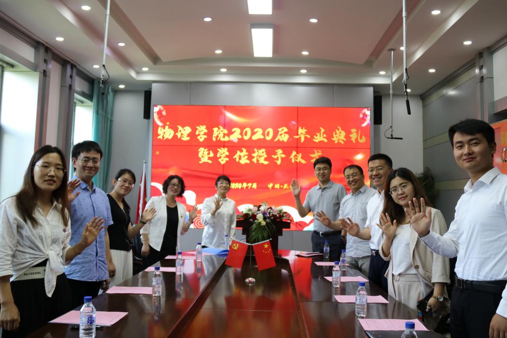 7月的东师学林郁郁葱葱、静湖波光粼粼。受疫情影响,学院于2020年7月3日上午9点在学院三楼会议室举办“云”毕业典礼暨学位授予仪式。学院党委书记李金环教授、院长吴金辉教授、副院长付申成副教授、副院长黄继鹏副教授、党委副书记兼副院长臧丹、各年级本科生及研究生辅导员、部分毕业生等150余人参加典礼。典礼由李金环书记主持。