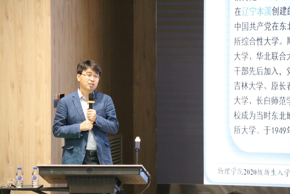 吴金辉院长从东师概况、物院简介、平台介绍、就业情况、学生活动五个方面对同学们了进行思想教育指导,加强学生对东师教育教学理念的认识和理解。吴金辉院长围绕“严谨求实,创新发展”的院训,通过列举优秀校友成就,使学生对“梦想”一词有了更准确的定义。李金环书记语言幽默风趣,从生活和学习了两个方面向学生展示了大学生应有的朴实成熟的行事作风、仔细严谨的学习态度、耐心坚持的进取精神,对学生良好行为习惯的培养起到了引导作用。