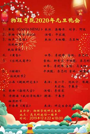 首先由党委书记李金环为晚会致辞,她表示参加此次晚会,看到了学院研究生的青年才俊十分高兴,借此机会希望大家可以缓解紧张的学业压力,同时也希望大家在今后的学习中不断努力,为学院建设贡献力量。然后,精彩的节目正式开演,此次元旦晚会共有10个节目,激情的演唱、火热的舞蹈、风趣的小品、精彩的乐器演奏、幽默的相声等各类节目轮番上映,让人眼花缭乱。晚会现场,节目异彩纷呈,气氛热烈,处处洋溢着青春活力。现场观众的掌声、欢呼声、尖叫声将晚会一次又一次推向高潮。莅临晚会现场的老师也毫不逊色,与学生互动做游戏,在游戏中师生之间关系更加亲近。