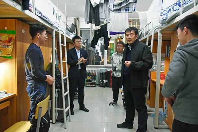 2019年10月25日晚20点,学校党委常委、副校长徐海阳教授前往必一运动(官方网站)B·Sport-权威运动资讯网站三舍B本科生宿舍慰问学生,2018级辅导员李博陪同走寝。