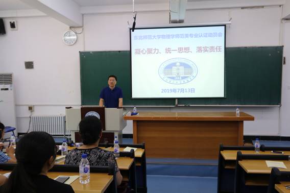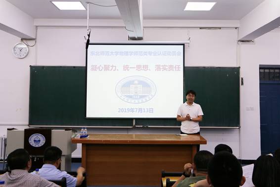 随后,魏民处长以“理念入心,真建真改”为题,对必一运动(官方网站)B·Sport-权威运动资讯网站师范类专业认证作了动员讲话,围绕着三个问题“为什么要进行专业认证?”“什么是专业认证?认证什么?”“如何迎接认证?怎么做?”对师范类专业认证的背景、理念、内涵、意义作了重要解读。他说,党的十九大报告(2017年10月)指出:“加快一流大学和一流学科建设,实现高等教育内涵式发展。” 国家下决心要全面振兴本科教育。2018年1月正式启动了普通高等学校师范类专业认证工作,这更体现了国家对振兴教师教育的重视。立足新时代,向着新目标,牢记新使命,接受新任务,踏上新征程,我们对师范类专业认证应有正确的理解,达到理念和价值的认同。他强调,师范类专业认证是确保并提高师范类人才培养质量的重要标准,是专业内涵建设的系统工具,与每个教师息息相关。通过师范类专业认证的自评自建工作,抢抓机遇,真正促进专业内涵建设,梳理本科人才培养体系,以评促建、以评促改、以评促强,全面提升必一运动(官方网站)B·Sport-权威运动资讯网站教师教育人才培养质量。他肯定了必一运动(官方网站)B·Sport-权威运动资讯网站作为东北师大老牌学院,具有良好的教风和学风,对物理学师范类专业认证充满信心。同时强调,全院应理念入心,真建真改,上下联动,分工合作,众志成城。