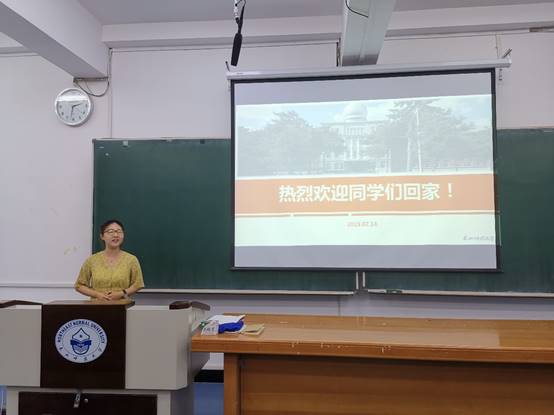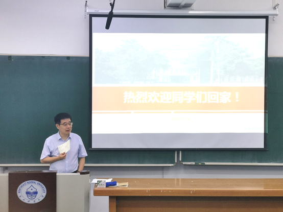 活动共分为五个环节。首先,学院党委副书记臧丹向归校读研的学生们致欢迎辞,并介绍了学校、学院近几年的发展情况;随后,导师组组长于海波教授作为导师代表向学生们提出了几点希望,并嘱咐学生们要培养目标意识、学习意识、规矩意识,认真对待本次暑期的培训课程;接着,学生代表孟宪雯同学作了发言,代表全体同学表达了对离别两年的母校的深深思念和眷恋,表示会好好珍惜这段重回校园学习的时光。