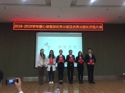 2019年5月5日,在学校学生资助管理中心主办的“2018-2019学年爱心使者团优秀分团及优秀分团长”评选中,必一运动(官方网站)B·Sport-权威运动资讯网站爱心使者团在全校23个学院(部)中脱颖而出,以总分第一名的优异成绩荣获“优秀分团”荣誉称号,爱心使者团团长、2016级物理学本科生何欢荣获“优秀分团长”荣誉称号。