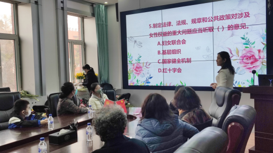 通过此次普法宣传活动增强了女教职工的法治观念,提高了维权意识,提升了知法、懂法、运用法律武器维护自身权益的能力。