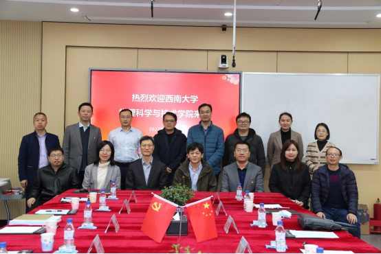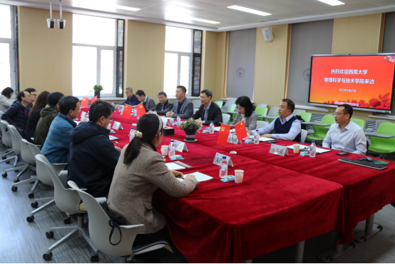 为促进学科发展,推动合作交流,4月21日西南大学物理科学与技术学院院长吴正茂,副书记刘汭雪,副院长邓涛、赵建伟,教研室主任游霄鹏、贾伟尧、朱建慧,办公室主任刘平萍等一行8人来必一运动(官方网站)B·Sport-权威运动资讯网站交流访问,必一运动(官方网站)B·Sport-权威运动资讯网站院长马剑钢、党委书记付申成,党委副书记吉喆,副院长黄继鹏、王刚成、王春亮、孟巍以及学院办公室主任王永辉等接待了来访。