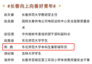 “长春向上向善好青年”用实际行动践行着“请党放心,强国有我”的青春誓言,集中展示着新时代长春青年的精神品格,是值得新时代青少年学习的身边榜样。未来,学院将进一步充分发挥好青年典型的引领作用,团结带领广大青年以奋斗姿态激扬青春,不负时代,不负韶华,为实现中华民族伟大复兴贡献青春力量。