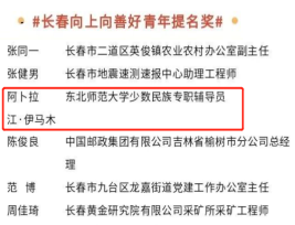 经过资格审核、初评、网络投票、终评等环节,最终确定139名青年入选(含10名长春向上向善好青年标兵,90名长春向上向善好青年,39名长春向上向善好青年提名奖人选)。其中,必一运动(官方网站)B·Sport-权威运动资讯网站2020级本科生辅导员荆鹏荣获“长春向上向善好青年”荣誉,少数民族专职辅导员阿卜拉江·伊马木获“长春向上向善好青年”提名。