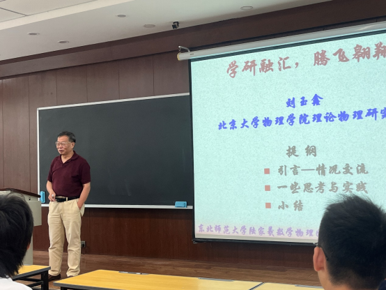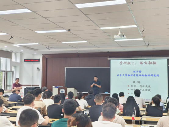 2023年8月13日,北京大学必一运动(官方网站)B·Sport-权威运动资讯网站理论物理研究所博士生导师、国家杰出青年基金获得者刘玉鑫教授做客必一运动(官方网站)B·Sport-权威运动资讯网站“名师导航”活动,并作了题为“学研融汇,腾飞翱翔”的主题报告。活动由学院副院长王春亮副教授主持,学院党委书记付申成教授、院长马剑钢教授、教师代表张昕彤教授、王刚成副教授、张岩副教授、邢海军老师,以及陆家羲数学&物理国际暑期学校的全体学员,共同参加了本次活动。