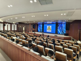 在会议上,刘宇臣老师首先向同学们介绍了辐射安全警示图像,主要包括电离辐射标志、辐射警告标志、辐射防护标志等。并告诉同学们这些标志都是为了提醒人们注意辐射的危害,保护人们的健康和安全。 接着通过伦琴和贝克勒尔的事迹向同学们介绍了电离辐射的发现历史。除此之外,刘宇臣先生还给同学们讲解了电离辐射的类型、特点以及原子的构成及衰变,并列举《蓝色的裸体》、居里夫人、埃本·拜尔斯等实例,生动形象的向同学们阐述了电离辐射的危害和防护不当的严重后果。在介绍完有关于电离辐射的基本知识后,刘宇臣老师向同学们传授了辐射防护方法。通过分别列举时间防护、距离防护、屏蔽防护等方面的防护方法,使学生了解了在实验室中保证个人安全的方法,进一步加深了学生的安全意识。
