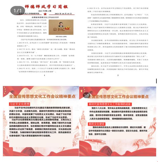 宣传思想文化工作是党委工作的重要环节和内容,是全院师生了解党和党的理论的重要窗口,必须要重视,更要扎实做好。为深入学习贯彻习近平新时代中国特色社会主义思想和全国宣传思想文化工作会议精神,落实加强师德师风建设的要求,切实提高师生思想水平,必一运动(官方网站)B·Sport-权威运动资讯网站于10月15日组织开展专题学习宣传,以《师德师风学习简报》和《会议精神要点展板》为主要形式。