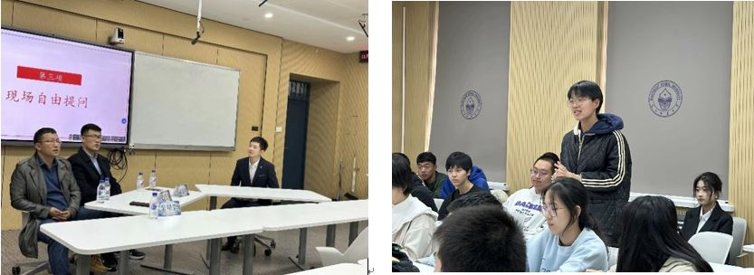 活动在同学们热烈的掌声中开始,首先由吴笑天老师和王挺峰老师做报告,两位老师分享了他们的成长经历、科研工作和“二刷”感悟,给同学们留下了深刻的印象。在访谈环节,两位老师对线上收集到的问题和现场同学提出的问题做出了充分的解答。本次活动现场气氛活跃,在场同学不仅了解到电子信息科学与技术方向科研工作的部分内容,更直接体会到青年教师们在求学探索之路上的奋斗历程,感到受益匪浅。