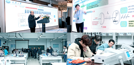 在交流研讨环节,与会教师参观了物理国家级实验教学示范中心(西南交通大学),并就会上报告内容进行了热烈交流讨论,纷纷表示获益匪浅、激发了自身课程建设和教学研究的动力和热情,期待在2024年1月即将召开的“第二届教育部首批大学物理实验课程虚拟教研室线下研讨会”。本次线下研讨会由教育部大学物理实验课程虚拟教研室(东北师范大学)主办,西南交通大学物理科学与技术学院承办,《物理实验》杂志、物理学师范专业国家级实验教学示范中心(东北师范大学)、物理国家级实验教学示范中心(西南交通大学)协办。
