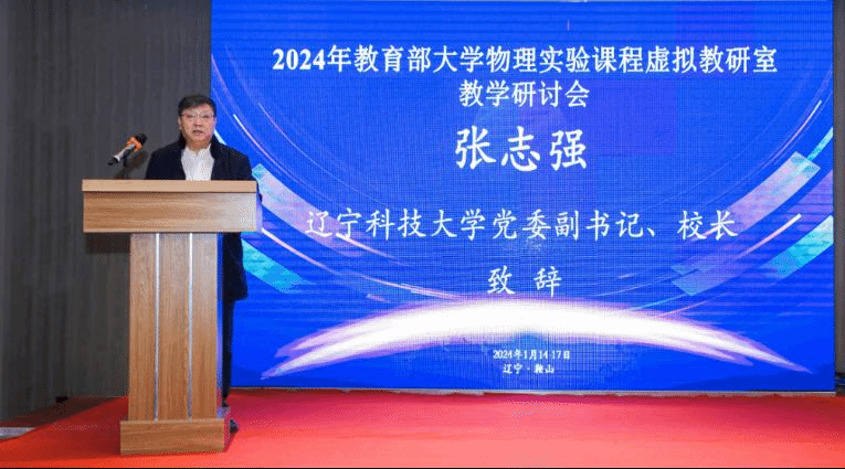 在开幕式上,张志强校长在致辞中介绍了辽宁科技大学发展情况和建设成效,感谢来自全国的大学物理实验领域专家、相关领导和教学同仁参加本次教学研讨会,对大家长期以来对辽宁科技大学发展和建设的支持表示诚挚谢意。
