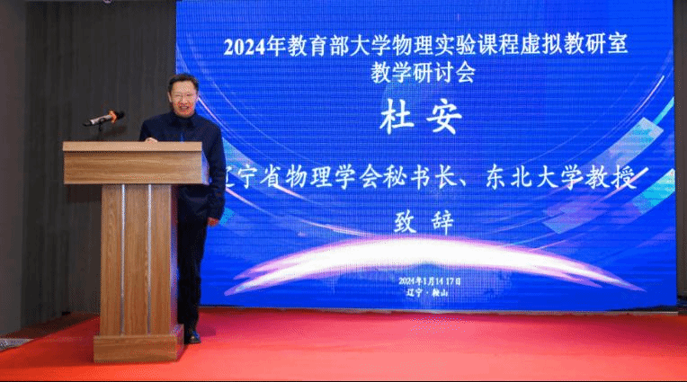 杜安教授在致辞中介绍了辽宁省高等物理教育尤其是实验物理教学发展现况,对长期工作在一线的教师的长期坚守、锐意创新表示感谢,对虚拟教研室在我国大学物理实验教学发展中起到的积极推动作用表达赞誉。