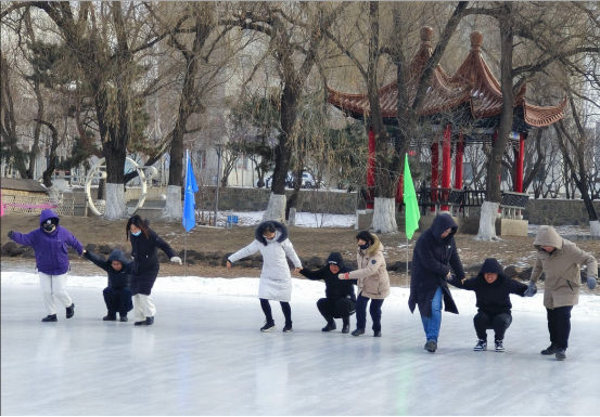 20日上午,广阔的冰面在阳光的照耀下,映衬出一番热闹的景象。参加趣味运动会的选手们身着厚实的保暖服装,戴着手套,兴高采烈地聚集在一起。工会文体委员宣读比赛规则后,各项比赛项目有序展开。