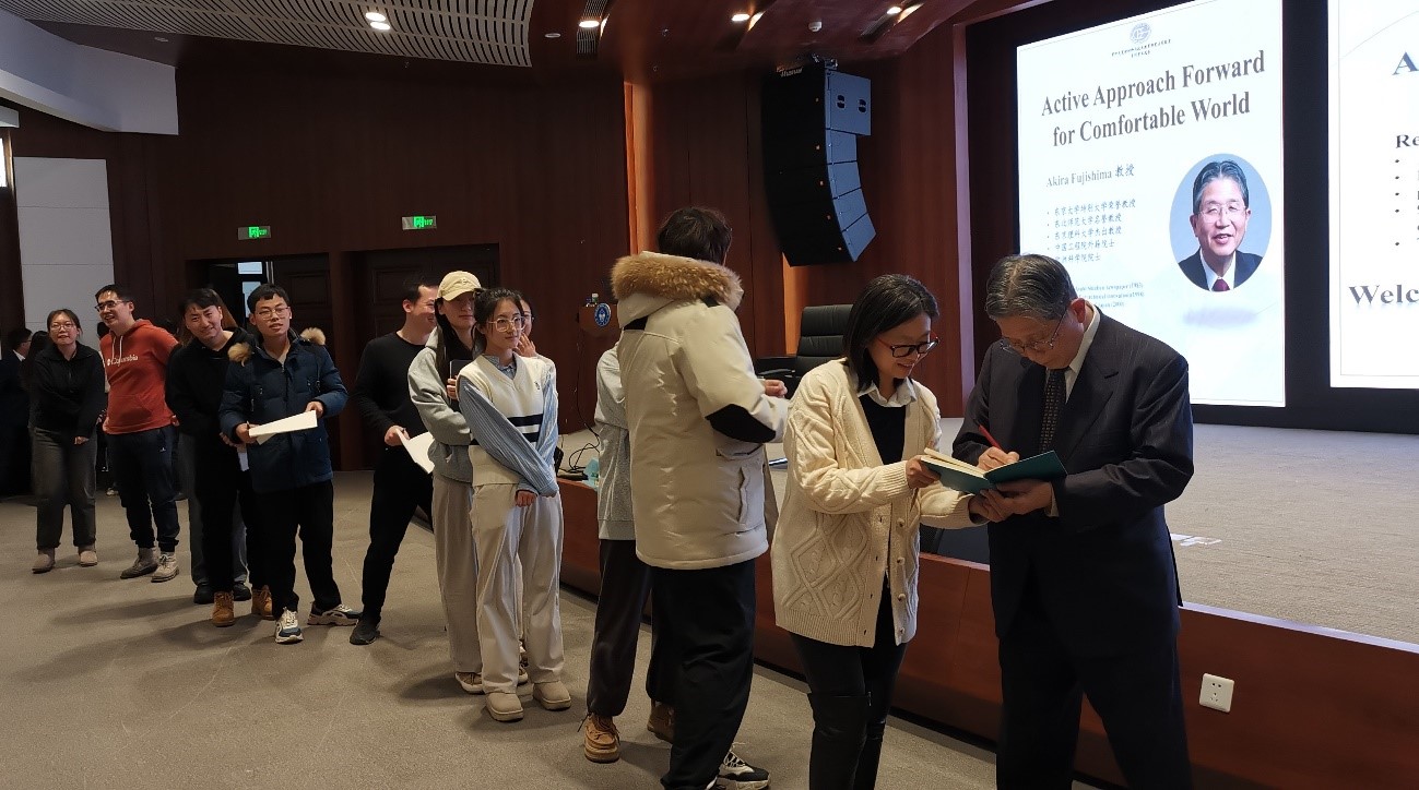 学术活动周邀请到学术大师藤岛昭教授做客惟真论坛。作为一位国际著名的化学家,藤岛教授以“How to Get Clean World: Photocatalysis and Carbon Recycling”为主题,详细介绍了光催化技术在环境净化和能源转化方面的应用,以及碳循环的重要性。他的讲座引起了广大师生的浓厚兴趣,并激发了大家对“人工光合成”和可持续发展的思考。藤岛昭教授还引用了《论语》中“知之者不如好之者,好之者不如乐之者”的典故来鼓励在场的每一个人。他建议大家在研究生涯中应当勤于思考,努力将科研与个人兴趣相结合,并从中获得乐趣。整个交流活动持续了近两个小时,师生们积极参与,签名合影,现场互动气氛热烈。