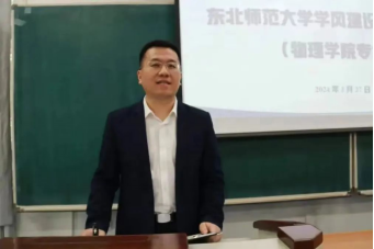 学院党委副书记兼副院长吉喆从“构建多层次、高质量学风建设工作体系,培养具有‘科学家精神’的青年物理人才”的角度介绍了学院学风建设的经验。