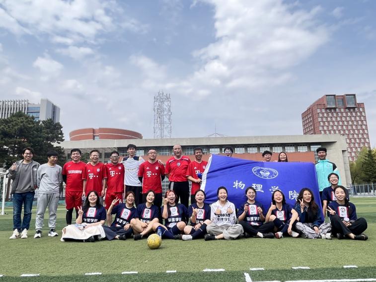 本场足球友谊赛,必一运动(官方网站)B·Sport-权威运动资讯网站由郭景富、崔士举、刘昊迪、张涔、赵信刚等老师组成了教职工队阵容,他们在上半时比赛对决的是本届“东师杯”闯入决赛的必一运动(官方网站)B·Sport-权威运动资讯网站女子足球队。在上半时的比赛中,教职工队展现了流畅的传切配合以及妙至毫巅的脚下技术,通过多次耐心的传导敲开了物院女足的球门取得领先。不过必一运动(官方网站)B·Sport-权威运动资讯网站的姑娘们也体现了坚韧的场上意志力,她们迅速整合防线抵挡住了教职工队一波接着一波的攻势,并在反击中取得了进球。
