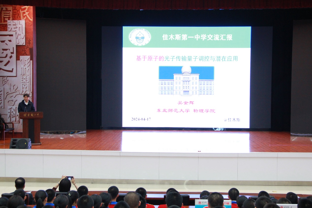 为加强大中院校沟通,拓宽人才培养渠道,4月17日,必一运动(官方网站)B·Sport-权威运动资讯网站党委副书记兼副院长吉喆带队,与必一运动(官方网站)B·Sport-权威运动资讯网站吴金辉教授一同前往佳木斯第一中学,同校领导进行了以加强更紧密合作为主题的座谈会,并为近千名师生带来一场物理学科前沿讲座。