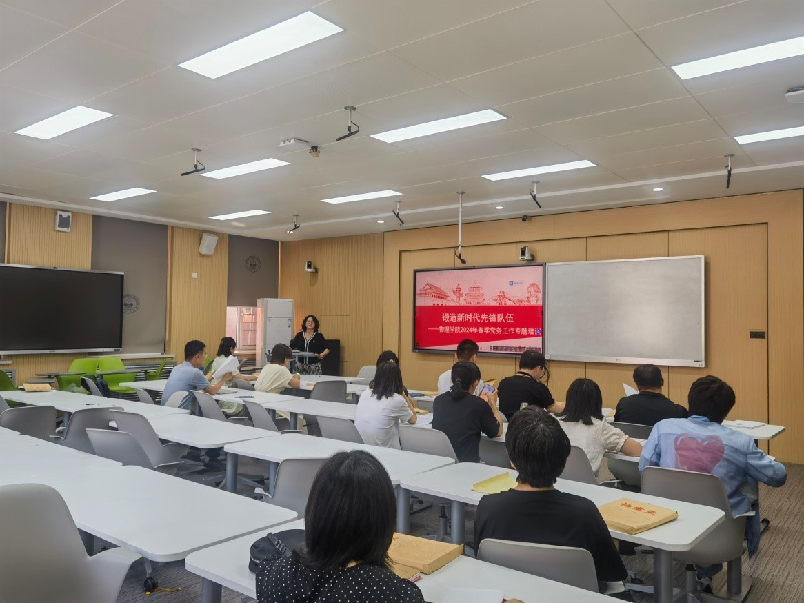 会议伊始,臧丹就发展党员工作展开了全面且深入的培训。她指明,发展党员工作是党员队伍建设的关键构成部分,各支部书记务必要将政治标准切实落地,严格把控发展党员的流程关。紧接着,她从入党申请人培养直至预备党员转正,详尽阐述了发展党员的完整流程,并着重剖析了今年发展党员材料中现存的显著问题。她要求各党支部书记切实担当起发展党员材料的填写职责,确保入党材料准确无误,努力成为党务工作的行家里手。