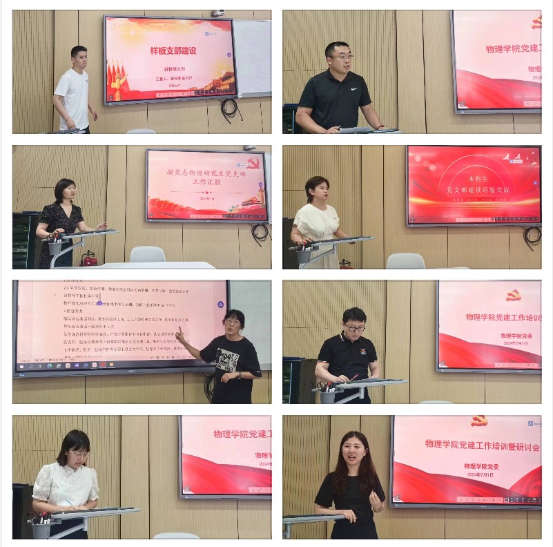 随后,学院党委安排“样板党支部”及“标兵党支部”进行工作经验分享。材料党支部副书记张守涛汇报吉林省样板党支部和第三批高校“双带头人”教师党支部书记工作室的建设情况,并介绍了未来的工作计划;实验中心党支部书记张涔分享了支部的工作经验及现存问题;凝聚态物理研究生党支部书记胡俊丽汇报了支部活动的开展情况及后续工作计划;本科生第一党支部书记刘雨婷介绍了培养和管理党员的有效经验以及努力方向。