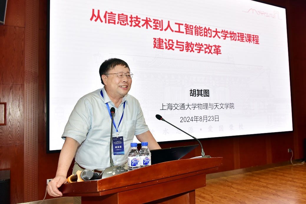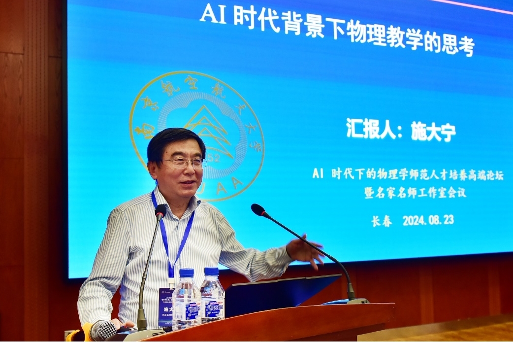 施大宁教授的报告以“AI时代背景下物理教学的思考”为题,通过南京航空航天大学在物理教学中的创新实践,提出了基于人工智能和融合数智要素的大学物理教学改革思路。